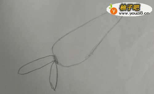 4画好后我们来把胡萝卜的外边描摹一下,然后在他的下端画上几道横线。