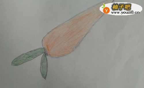 6最后涂上胡萝卜代表性的颜色橙黄色。这样我们可爱的胡萝卜就画好了。