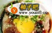 3猪肉末加姜末,鸡蛋一个,酱油,葱花,糖搅拌,或者根据自己腌制猪肉的习惯放调料,随意吧。