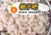 2莲藕去皮,切丁,汆水2分钟,控干备用。