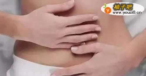 3然后两手大拇指相对,掌心平贴腹部,从腹部中间往两外侧画圆按摩,力量不要太小,腹部要有压迫感。先逆向划12圈,然后反向12圈。