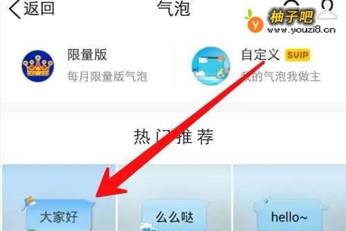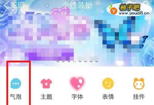 4进入到个性装扮的页面,我们点击框内的【气泡】。
