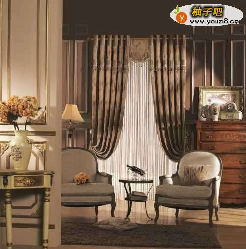 3中式风格: 中式风格家居以古朴、雅兴著称,讲究精雕细琢。中式风格家居色调多为朱红、紫檀、浅米、咖啡色,窗帘色彩也应融于家居整体;面料宜选用具有浓郁中国风的丝、绸、锻,而写意点染的国画、苍劲有力的书法等极具中国传统文化艺术的元素都可将中式风格表现得淋漓尽致。