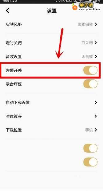 5进入到设置这个页面中之后,在该页面中我们找到弹幕开关这个选项,点击该选项右侧的开关按钮,即可打开弹幕功能。