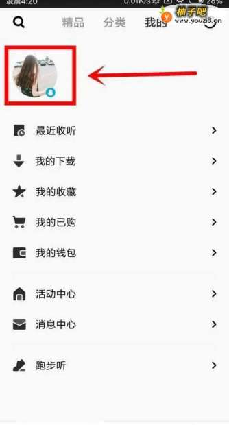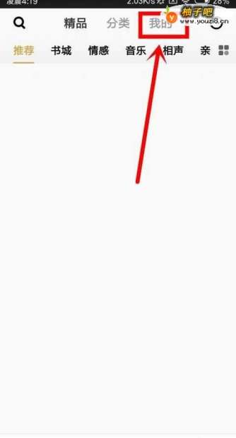 3进入到企鹅fm首界面中之后,在该页面的顶部栏目中我们找到我的这个选项,点击进入。