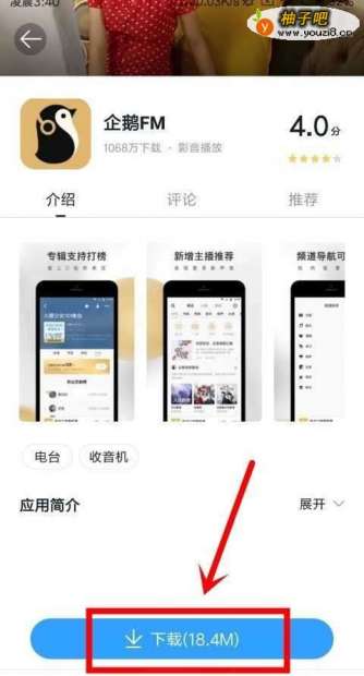 首先,我们先去百度手机助手中将企鹅fm这款软件下载下来,点击页面正下方的下载按钮,即可开始进行下载。