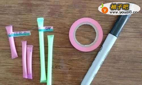 7利用吸管制作成日常护肤品容器,用完即可丢弃。