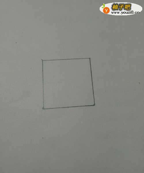 2先用笔和直尺在彩纸上画一个正方形,每条边一样长。
