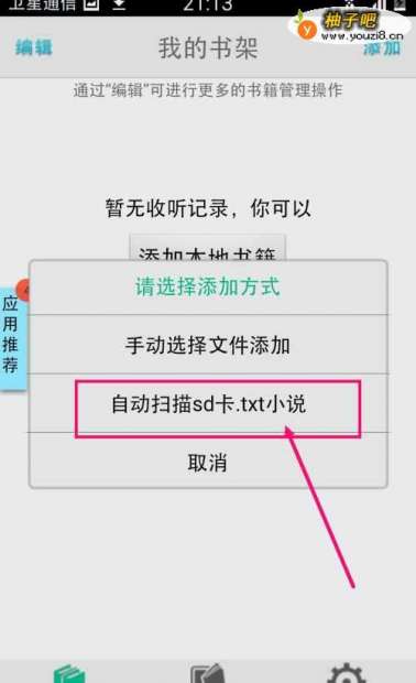6开始就能听书了,打开txt听书软件选择添加本地书籍。点自动扫描sd卡,txt小说,就选择你前面保存的书籍。点右上角添加。添加好了就可以点下可听了。