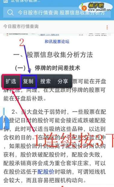 4按下自由复制又跳出浮窗窗口扩选,复制等。我们要的是整篇所以就按三下扩选,因为按三下扩选正好是选中整篇,然后再按复制。