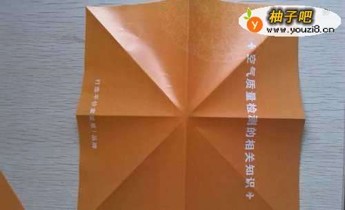 2简单的说在纸上折个“米”字,即分别沿正方形纸的两个对角线对折一下,沿中心线对折一下。