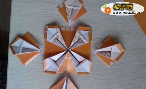 7把四个瓣按照如下方法插到原来折好的那一个上面。