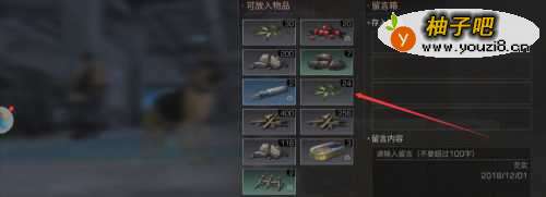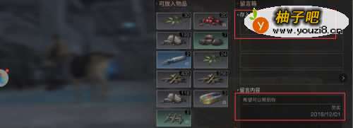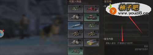 2点击留言之后进入到背包,这里显示可放入的所有物品,如下图