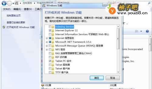 打开控制面板将查看方式改为小图标,找到程序和功能,选择打开或关闭windows功能。选择internet信息服务,确定安装