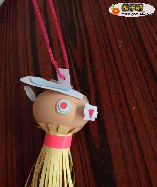 取出之前准备好的彩绳,穿过在小兔身体上,留出的小孔即可。