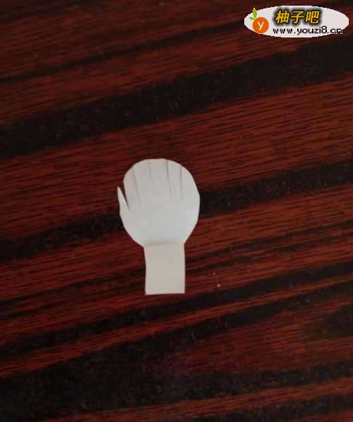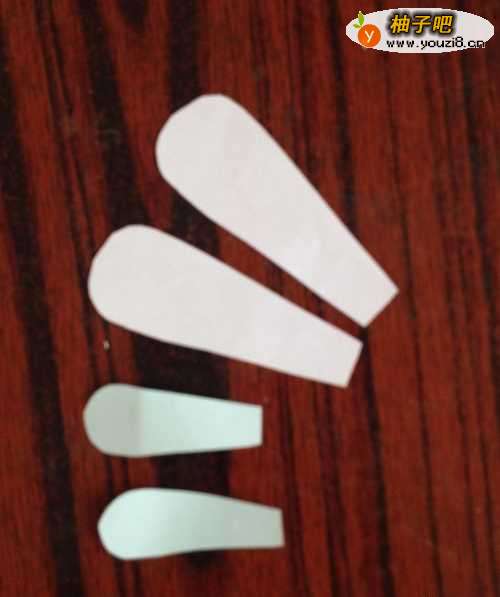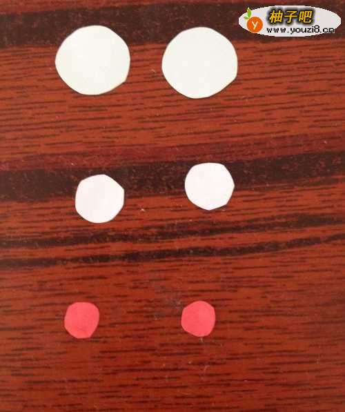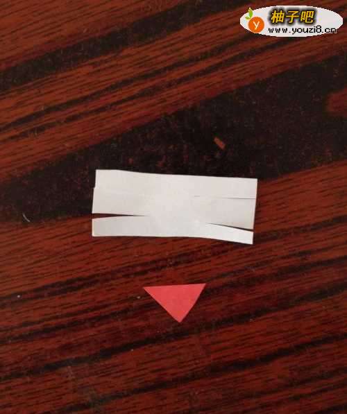 取一张白色卡纸,左右各剪两次小兔胡须就完成了。取红色卡纸剪出一个三角形状,用胶水贴在胡须上,小兔子的嘴巴和胡须就做好了。