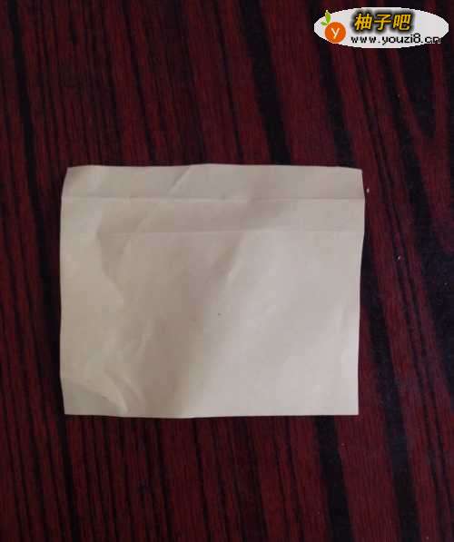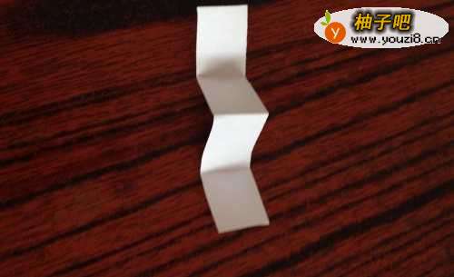 取一张白色卡纸,剪成长方形状,对折一次后,再左右各对折一次(不明白可以看小编图片展示),上方剪出一个小孔(用于穿绳用),然后用胶水固定在小兔灯笼的蛋壳身体上。
