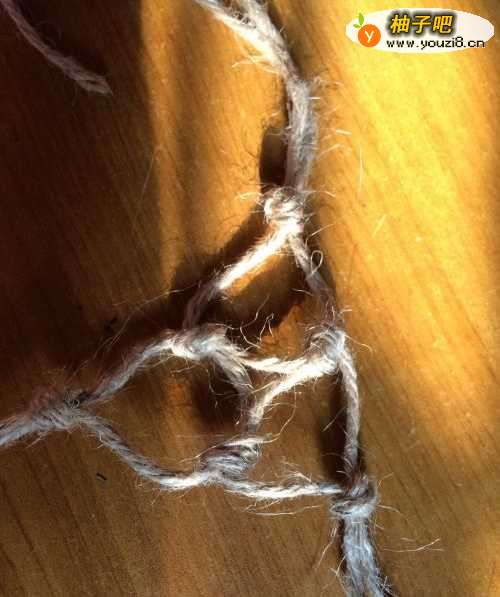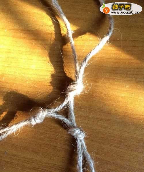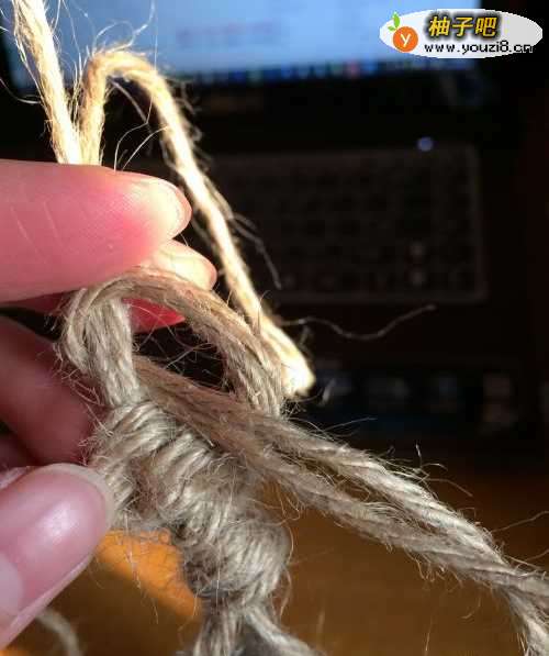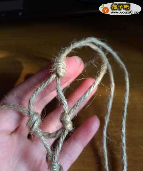 5收口。先把所有麻绳打一个打结,然后开始如下图打结。