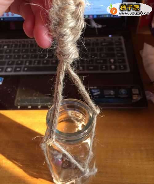 麻绳编织吊篮花瓶,旧物大改造。只要你会打结那么麻绳的天下就是你的了。