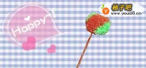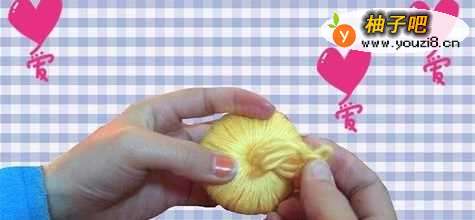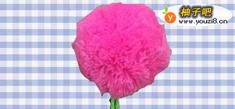4花做好后取一根手工花杆插到花中间,再用毛线包好花杆。
