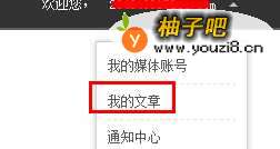 4在网页的右上方,弹出的菜单栏中点击“我的文章”,进入到文章管理页面。