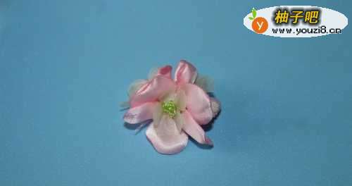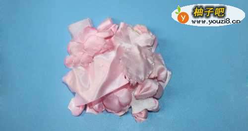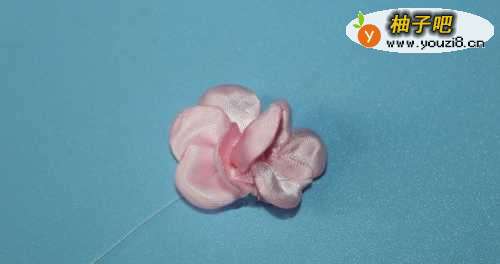4然后将做好的大花,侧面再缝上小花(小花的做法和大花的做法一样)。