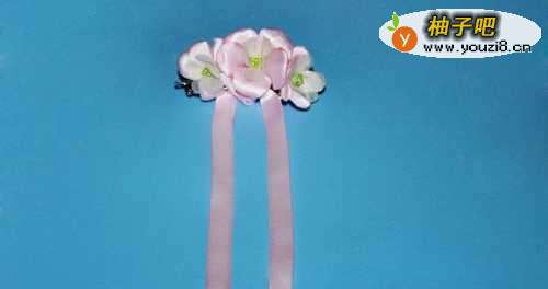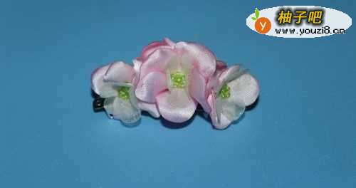 6然后如图粘到夹子中间,再做两朵小花,粘到两边。