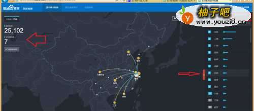 5便可以查看到国内各个景点的拥挤指数,左上角还可以调整地图大小: