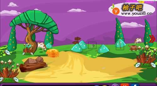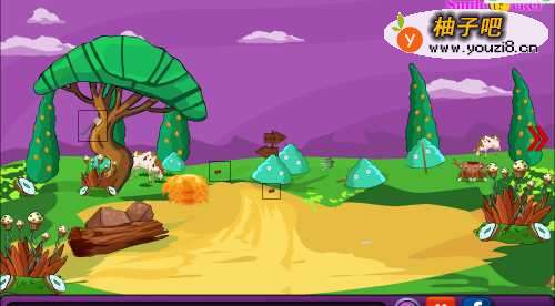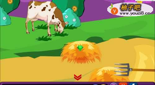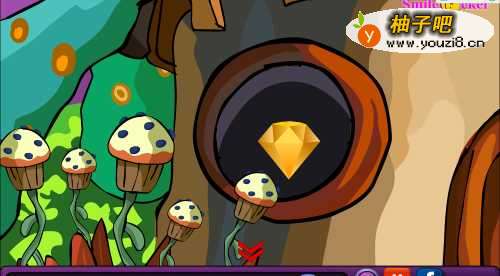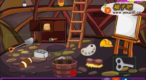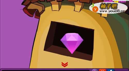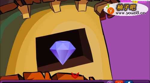 12右走,宝石放到右面门上,打开门,进入房子中,打开左面柜子得到大米,左面得到铲子,上方得到松果,木桶后面得到刀片,右下得到发条。