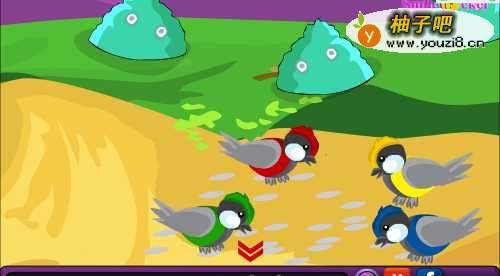 19使用剪刀剪开大米的袋子,把大米撒到中间空地上,根据鸟落地顺序得到颜色线索。