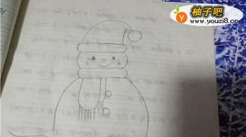 5接下来,再把雪人胖胖的身子画出来,再给雪人把围巾的穗子也用竖线表现出来,如图。