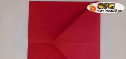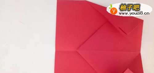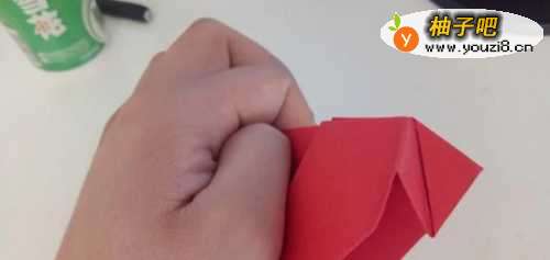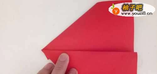 9之后我们将尖部沿着中间向上折一部分,如图所示。