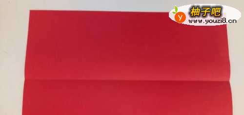 首先我们将彩纸横向对折一次,并展开得到辅助线,如图所示。