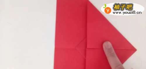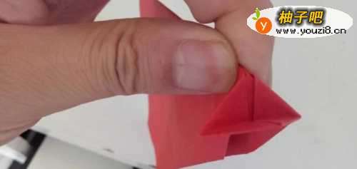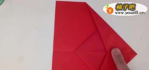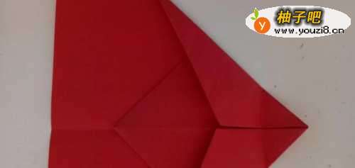 7之后我们将头部折进入一个角,如图所示。