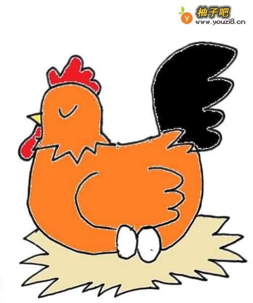 7最后给母鸡涂上漂亮的颜色。简笔画母鸡就画好了。