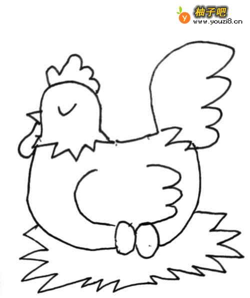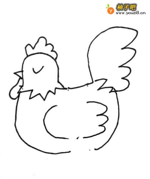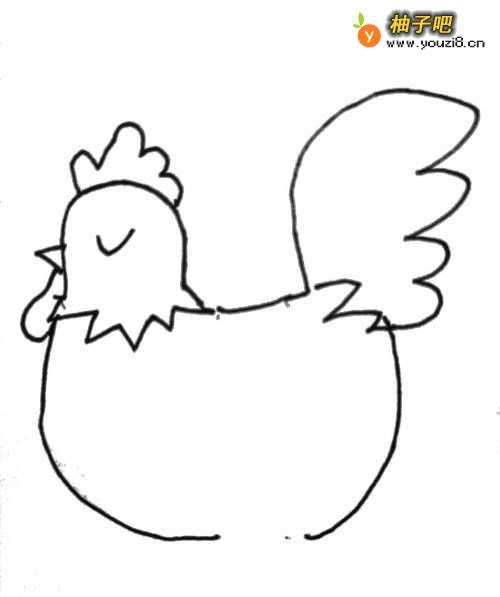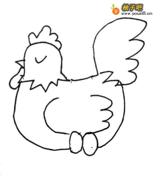 5在母鸡的身体下面画出两个椭圆形的鸡蛋。