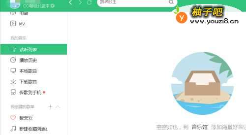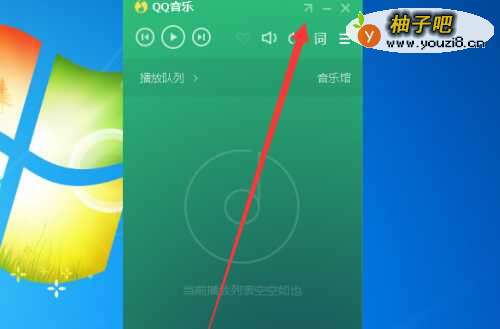 登录qq音乐,如果是小界面,点击如图所示的箭头,将节目变成大界面