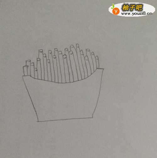 4继续画紧挨着的薯条,注意形状。
