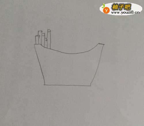 3从左边开始画第一根薯条。