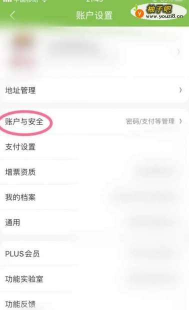 3进入到账户设置的页面选项中点击账户与安全