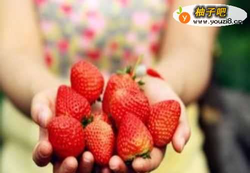 4草莓的挑选:草莓不要买太红的,颜色越是鲜艳就越是酸,红里带白的草莓最香甜了,买草莓的时候不要选个非常大,形状特奇怪的那种,要选大小一致的,小一点的更安全,颜色不要特别红,里面最好带点白色的小点点的。