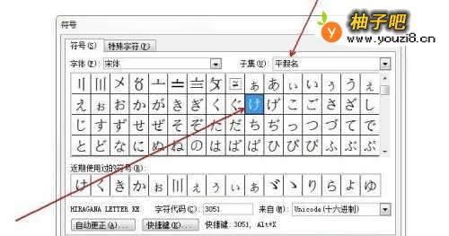 5则平假名け就插入到文档中的对应位置了。然后关闭“符号”对话框。