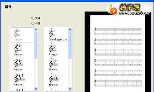 7往下就是调号的设置了,直接点击框里的调号图片即可,上面一点的地方还有大小调选择的切换。