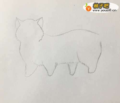 2然后画出下面胖胖的站立着的身体,仔细描一描。