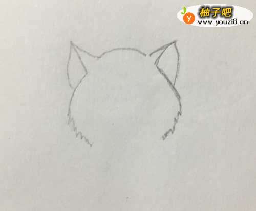 第一步先画出蓝眼白猫的头部轮廓,毛绒绒又胖乎乎的脸。
