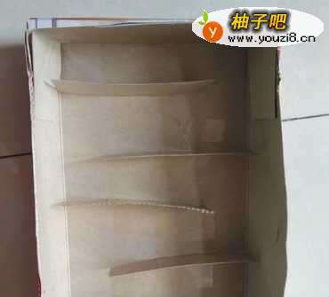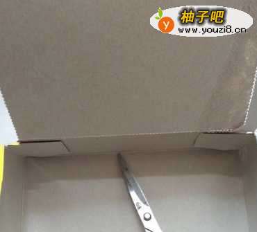 2把小纸箱的盖子打开,剪下来,暂时放一边。这样纸箱就是一个无盖的抽屉形状了。可以用剪刀把四边修理整齐。