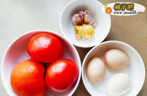 购买所需的食材并洗净,西红柿切片,鸡蛋打碎并搅拌均匀,姜切丝,蒜切片留着备用。