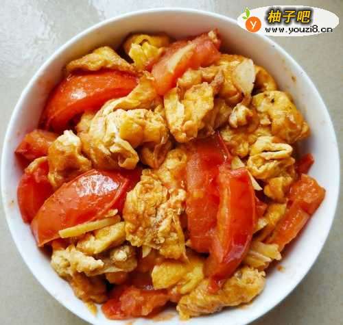 5待水快煮干时,熄火,盛盘;西红柿炒鸡蛋就完成啦。
