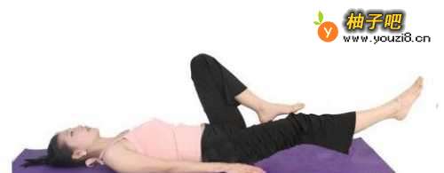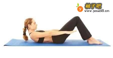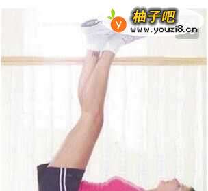 仰卧在瑜伽垫上,同时双腿伸直抬高,保持上身平躺贴近地面,双腿与上身成90度,再慢慢落下。每次2分钟,中间间隔30秒,连续做4组。