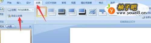 3之后PPT中就会一个喇叭的按钮,这个时候点击喇叭图标,然后点击工具栏上的”动画“按钮,点击菜单栏中的”自定义动画“选项